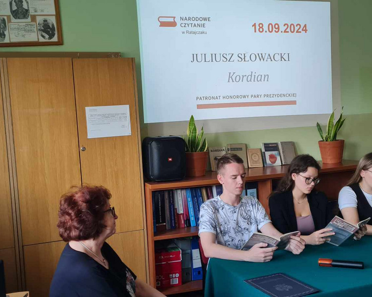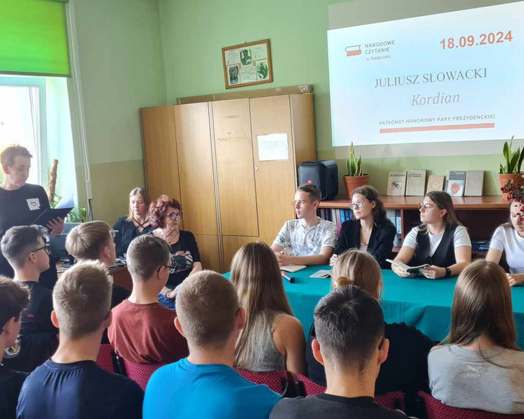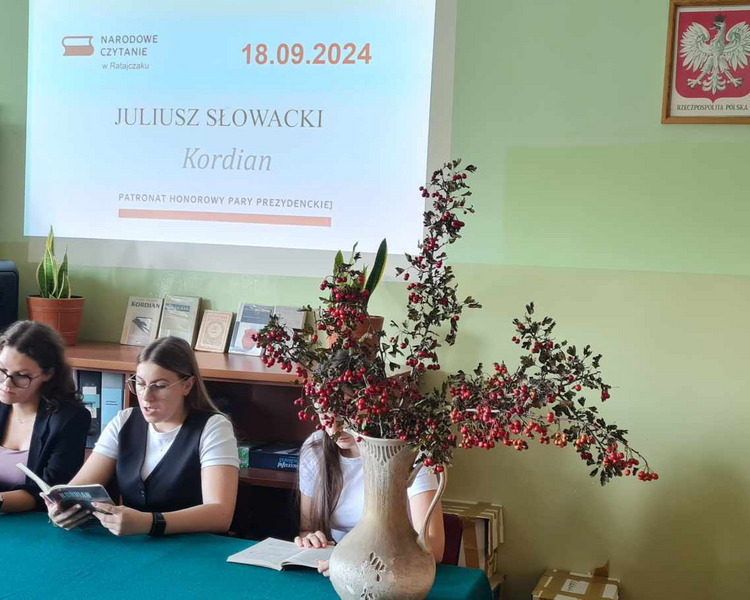18 września odbyła się ogólnopolska akcja Narodowego Czytania. Tym razem wszyscy Polacy czytali „Kordiana” Juliusza Słowackiego. W naszej szkole fragmenty dramatu odczytali uczniowie klasy 5 TGK. Zanim jednak oddaliśmy głos uczniom, Dyrektor szkoły Monika Kunc powitała zebranych oraz odczytała okolicznościowy list Prezydenta RP.