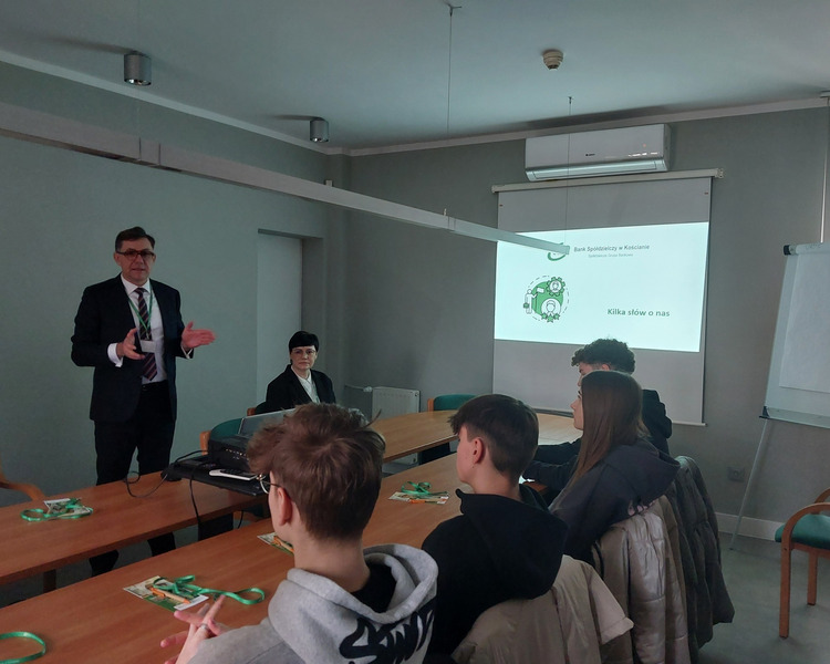 14 marca br. technicy rachunkowości z klasy II EGK udali się na wycieczkę przedmiotową do Banku Spółdzielczego w Kościanie. Zajęcia zostały przeprowadzone i przygotowane przez pana Damian Dudzińskiego - Członka Zarządu ds. Handlowych. Młodzież zapoznała się z profilem działalności banku i funkcjonowaniem placówki. Ważnym punktem spotkania była prelekcja dotycząca cyberbezpieczeństwa w bankowości. Uczniowie aktywnie brali udział w dyskusji na wiele tematów związanych z bankowością i rynkiem usług finansowych.