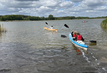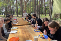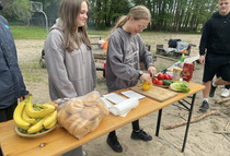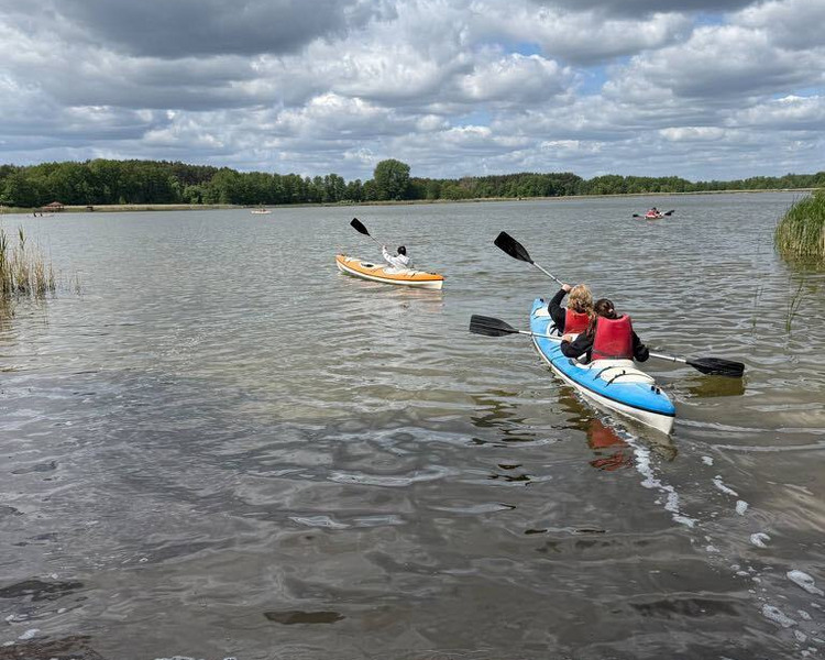 W ciągu dnia nie zabrakło czasu na przyjemności – kąpiel w jeziorze, pływanie kajakiem i wspólne posiłki pod chmurką smakowały wyjątkowo po intensywnych aktywnościach. Wieczorem przyszedł czas na ognisko – oprócz tradycyjnych kiełbasek nie zabrakło również zdrowych przekąsek. Zwieńczeniem dnia było wspólne śpiewanie, tańce oraz gra w siatkówkę plażową i rugby. Atmosfera była fantastyczna – pełna śmiechu, rozmów i integracji.