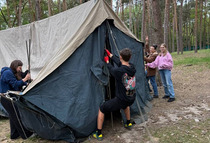 Po dotarciu na miejsce , do ośrodka „Szumi Camp” w miejscowości Miastko, zaczęło się prawdziwe wyzwanie – rozstawianie namiotów polowych i nauka maskowania w terenie. Mimo, że dla wielu było to pierwsze tego typu doświadczenie, wszyscy poradzili sobie znakomicie. Uczniowie szybko zorientowali się, że biwak to nie tylko relaks, ale także szkoła życia, która uczy współpracy, samodzielności i działania w terenie.