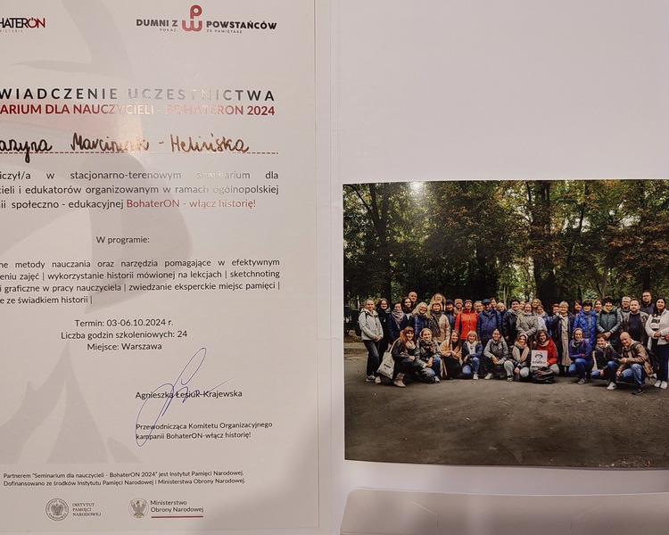W dniach 3-6.10.2024, w Warszawie, odbyło się „Stacjonarno-terenowe Seminarium dla nauczycieli- BohaterON 2024”. Zgłosiło się do niego ponad 200 nauczycieli i edukatorów z całej Polski. Wybrano spośród nich 40 osób, które w znaczący sposób wpłynęły na upowszechnianie historii XX wieku.