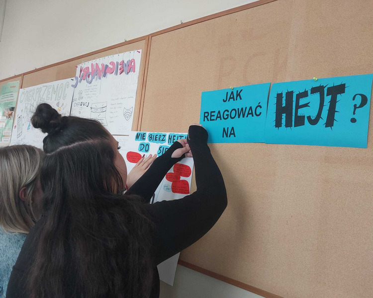 Uczniowie klasy 4TKM i 2LO brali udział w lekcji on-line realizowanej w ramach projektu edukacyjnego BAKCYL: „Cyberbezpieczeństwo”. Na podstawie zdobytej wiedzy, młodzież kształcąca się w zawodzie technika rachunkowości, rozwiązywała zagadki cyberbezpieczeństwa w grach edukacyjnych (SPOOFY GAME, ESCAPE ROOM DBI 2025) oraz przygotowała plakaty na temat: „Jak reagować na hejt?”. Przygotowane plakaty zostały rozwieszone na szkolnych korytarzach, aby zwrócić uwagę społeczności Ratajczaka na problemy wynikające z nieodpowiedniego korzystania z Internetu.