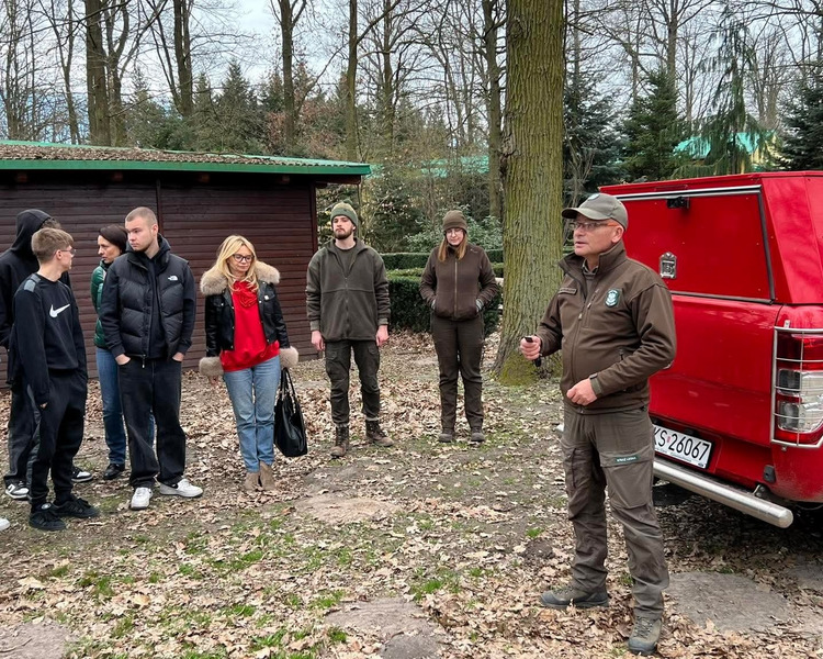 W dniu 09.04.2025 klasy 4BEK i 3bLO wraz z opiekunami udały się do Nadleśnictwa Kościan w Racocie. Spacer leśnymi dróżkami z panią Magdaleną Marchelek-Pawlak - Starszym Specjalistą Służby Leśnej ds. edukacji - utrwalił uczniom wiedzę o funkcjonowaniu ekosystemu leśnego, zależnościach między organizmami a ich środowiskiem, a także o zagrożeniach ze strony leśnych pasożytów - kleszczy. Szczególną atrakcją był pokaz specjalnego samochodu (Ford Ranger) patrolowo-gaśniczego, którego funkcje i wyposażenie przedstawił i omówił Wojciech Włodarczak, komendant posterunku Straży Leśnej Nadleśnictwa Kościan. Spotkanie w Nadleśnictwie zakończyło się wspólnym pieczeniem kiełbasek przy ognisku.