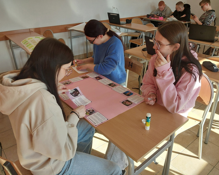 Uczniowie w ramach zajęć przygotowali plakaty z wybranymi globalnymi aktywistkami, na których przedstawili działania wybranej osoby i wskazali na rzecz których elementów zrównoważonego rozwoju działa.