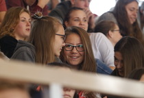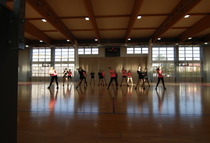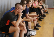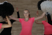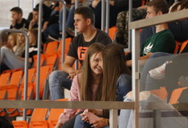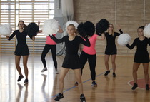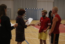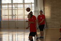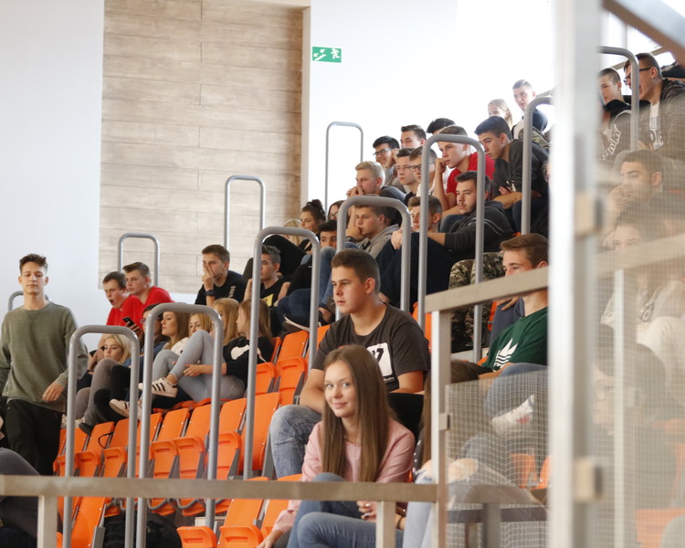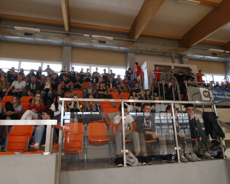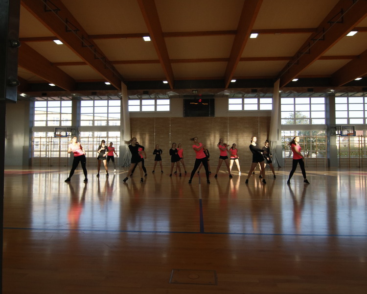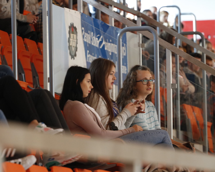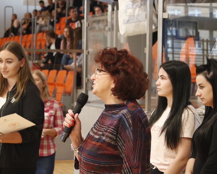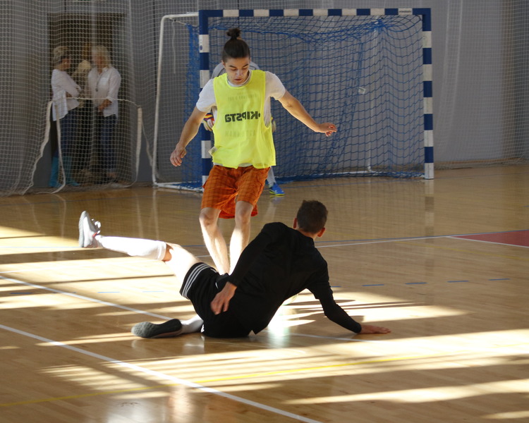 Przerwy pomiędzy meczami umilały dziewczyny z grupy fitess prezentując układ aerobikowy, maskotka szkoły, oraz członkinie Samorządu Uczniowskiego – Marta Sikora i Natalia Krawczyk z kl. 2CW, które składały najserdeczniejsze życzenia wszystkim chłopakom, częstując ich cukiereczkami.