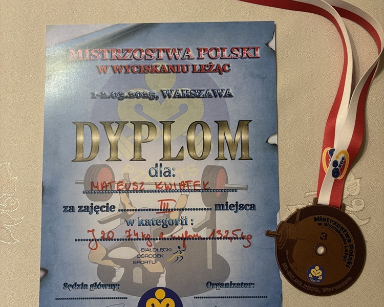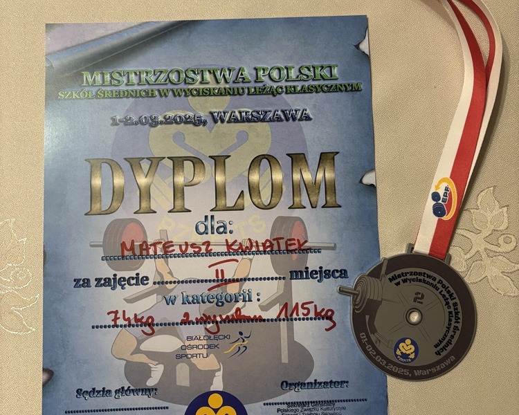 W roku 2024 wystartowałem w Mistrzostwach Polski w wyciskaniu leżąc klasycznym gdzie zająłem 3 miejsce oraz w Pucharze Polski w wyciskaniu zajmując 1 miejsce. W tym roku w Mistrzostwach Polski Szkół Średnich w wyciskaniu leżąc klasycznym zająłem 2 miejsce a w Mistrzostwach Polski w wyciskaniu leżąc miejsce 3.