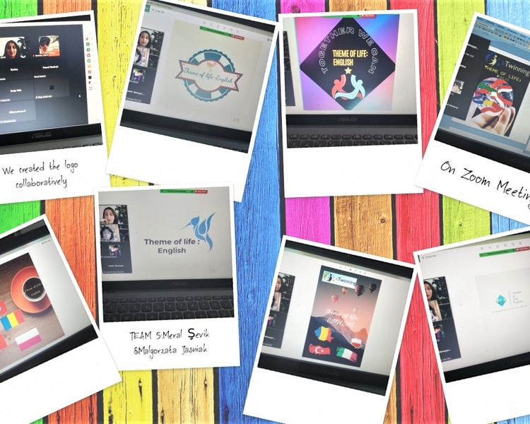 Każda szkoła przygotowała też propozycje na logo projektu. Pracowaliśmy w tym zadaniu razem ze szkołą turecką. Każdy uczeń przygotował swoją propozycję logo. W czasie spotkania online głosowaliśmy nad wyborem najlepszej opcji – wygrała jedna z naszych przygotowana przez Staszka!
