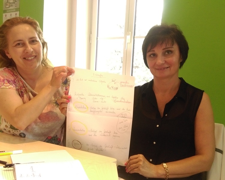 Uczestnicy zajęć wypróbowywali poznane metody, wcielając się w role uczniów, tworząc własne scenariusze lekcji z wykorzystaniem metody uczenia się za pomocą pięciu zmysłów oraz opracowując własne przykłady ćwiczeń leksykalnych i gramatycznych.