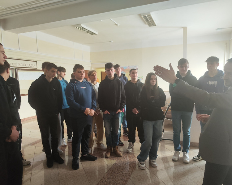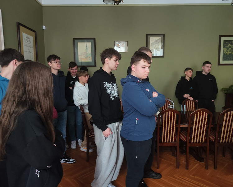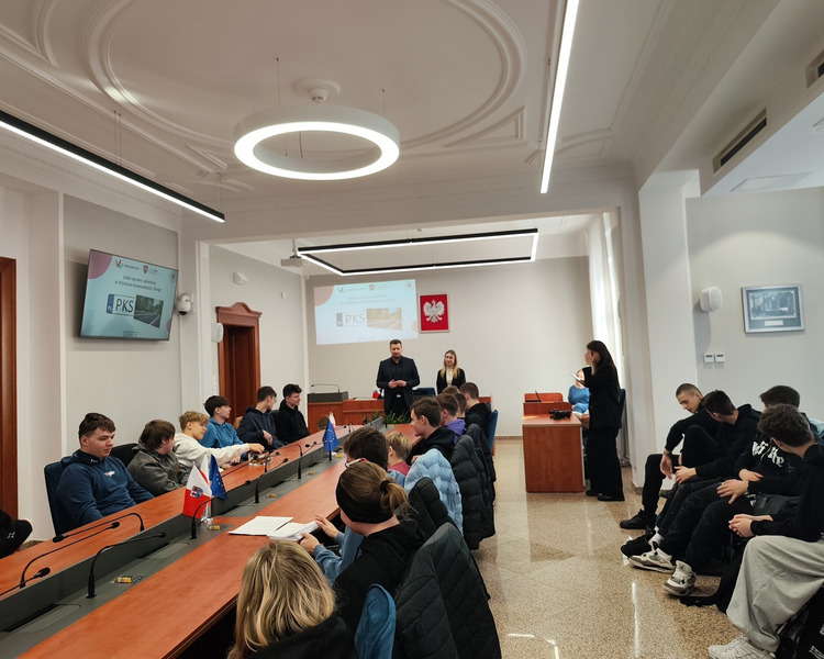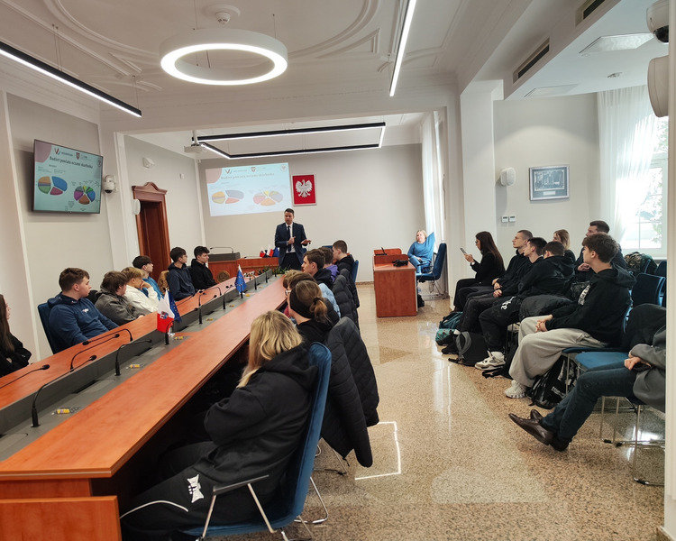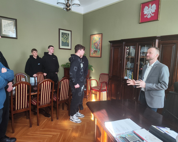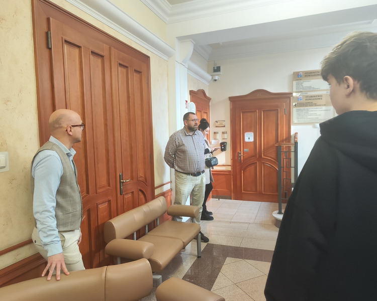 Spotkanie prowadził Pan Tomasz Kaczmarek, nauczyciel historii i doradca metodyczny. Uczniowie mieli okazję nie tylko pozyskać wiedzę teoretyczną, ale również wziąć udział w symulacyjnym głosowaniu, co ich bardzo zaciekawiło. W spotkaniu z młodzieżą wziął udział również Pan Wicestarosta Albert Pelec, który chętnie oprowadził młodzież po gabinetach starostwa i w trakcie opowiadał o zadaniach władz powiatowych. O budżecie Powiatu Kościańskiego w ciekawy sposób opowiadał Pan Skarbnik Powiatu Kościańskiego Michał Samoląg. Młodzież miała również okazję dowiedzieć się czym zajmuje się Wydział Komunikacji i Dróg oraz Wydział Geodezji, Kartografii, Katastru i Gospodarki Nieruchomościami.