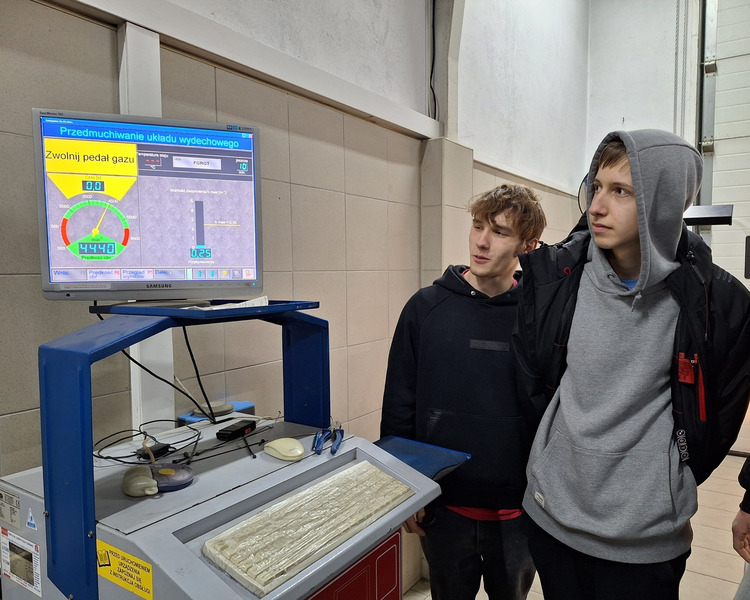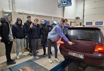 Dysponowaliśmy czterema „chętnymi” do badań pojazdami, które zostały sprawdzone pod względem technicznej sprawności w zakresie skuteczności działania układu hamulcowego (stanowisko rolkowe – pomiar siły hamowania), zawieszenia – pracy amortyzatorów (metoda Eusama), luzów w układzie kierowniczym i zawieszeniu (szarpaki). Dużo emocji dostarczyła analiza spalin, która wbrew obawom wypadła zupełnie pozytywnie. Pomiar głośności emitowanej przez poszczególne pojazdy dostarczył wielu wrażeń nie tylko uczniom, ale też zapewne okolicznym mieszkańcom. Wycieczka wzbogaciła naszą wiedzę i umiejętności w obszarach, które często trudno jest realizować w naszych zakładach, w których odbywamy w tygodniu zajęcia praktyczne. Przeprowadzone podczas wycieczki wielokierunkowe badania pojazdów, uzmysłowiły nam, jak ważna jest diagnostyka podzespołów pojazdów, szczególnie tych, które są odpowiedzialne za bezpieczeństwo w ruchu drogowym i wpływają na środowisko naturalne człowieka.