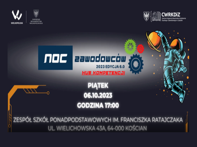 W dniu 6 października 2023 r. w naszej szkole odbyła się VI edycja Nocy Zawodowców, zorganizowana przez: Centrum Wsparcia Rzemiosła, Kształcenia Dualnego i Zawodowego w Lesznie, Zespół Szkół Ponadpodstawowych im. Franciszka Ratajczaka w Kościanie oraz Zespół Szkół Ponadpodstawowych im. Jana Kasprowicza w Nietążkowie. Akcja prowadzona jest z myślą o uczniach, którzy w niedalekiej przyszłości rozpoczną swoją naukę w szkołach ponadpodstawowych.
