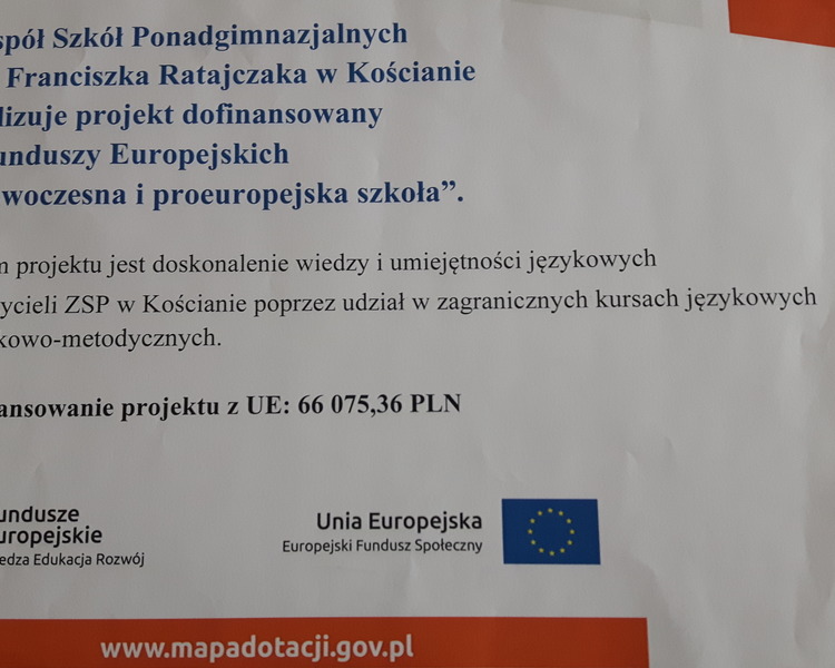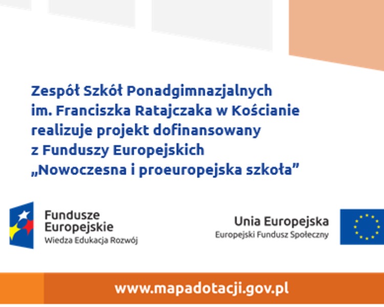 Zespół Szkół Ponadgimnazjalnych im. Franciszka Ratajczaka w Kościanie realizuje projekt „Nowoczesna i proeuropejska szkoła”.