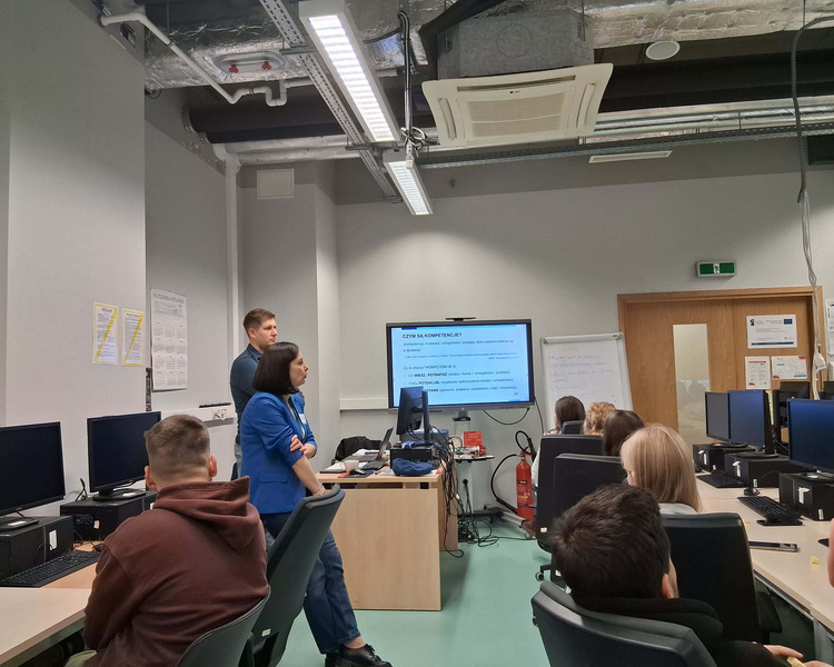 Uczestniczyliśmy również w zajęciach poświęconych planowaniu kariery i rozwijaniu kompetencji ważnych na współczesnym rynku pracy. Dużo uwagi poświęcono temu, jak stres wpływa na nasze zachowanie w życiu zawodowym i osobistym oraz jak skutecznie sobie z nim radzić. W ramach warsztatów wykonywaliśmy testy dotyczące naszego potencjału zawodowego, kompetencji cyfrowych oraz odporności na stres. Pracowaliśmy nad umiejętnością prawidłowego redagowania CV. Każdy z nas tworzył dokument aplikacyjny w programie komputerowym, korzystając z ofert pracy dopasowanych do naszych kompetencji. Analizowaliśmy również nasze mocne strony, zainteresowania, osobowość i umiejętności przydatne w zawodach, które chcielibyśmy wykonywać. Prowadzący zajęcia podkreślili, że wybór pracy powinien zależeć nie tylko od zarobków, lecz także od atmosfery, zgodności z naszymi zainteresowaniami oraz gotowości do wykonywania obowiązków z zaangażowaniem. Dzięki analizie przedstawionych historii zrozumieliśmy, na co warto zwracać uwagę przy podejmowaniu własnych decyzji związanych z przyszłą ścieżką kariery.