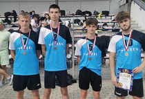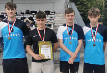 Sztafeta 4x400m chłopców: Wojtaszek Kacper 3LOs, Postaremczak Adam 2BGM, Popiel Stanisław 1LO, Kabat Jan 3LOs.