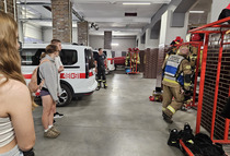 Podczas krótkiego spotkania uczniowie mieli również możliwość opanowania umiejętności niezbędnych w sytuacjach zagrożenia i zdobycia wiedzy z zakresu edukacji przeciwpożarowej.