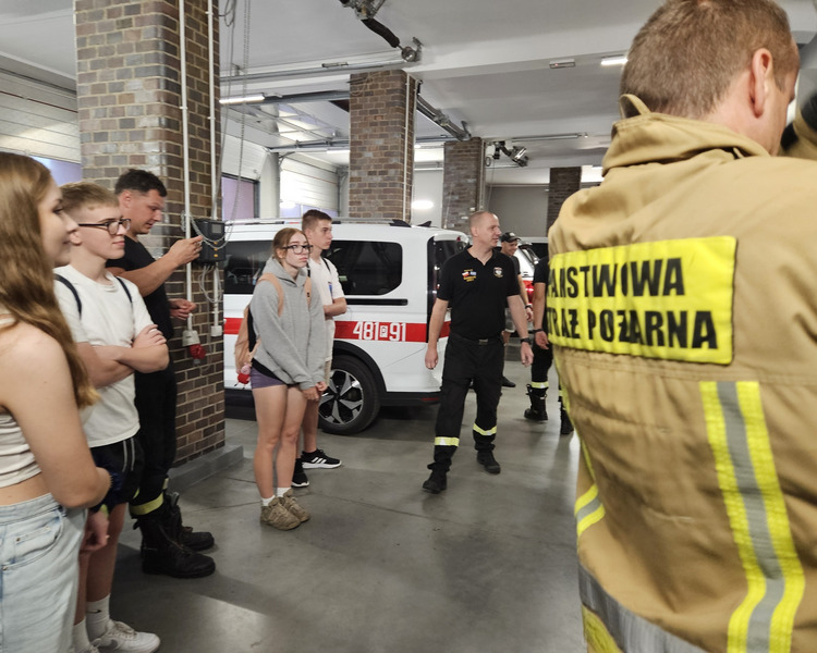Strażacy zaprezentowali sprzęt stanowiący wyposażenie jednostki. Uczniowie oglądali wozy strażackie, a chętni mogli usiąść za kierownicą wozu strażackiego. W formie pogadanki i prezentacji pracownicy zapoznali młodzież z zadaniami realizowanymi przez straż pożarną, sposobami alarmowania oraz właściwego zachowania się w przypadku zagrożenia. Wszyscy z wielkim zaciekawieniem wysłuchali opowieści o akcjach ratowniczo - gaśniczych.