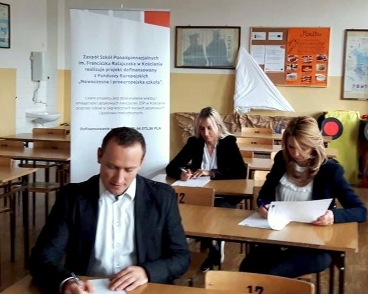 Kilka dni temu zakończyły się zmagania z językiem angielskim trojga naszych nauczycieli, którzy w lipcu wyjadą na kurs tego języka na Maltę w ramach realizacji projektu „Nowoczesna i proeuropejska szkoła” w programie POWERSE. Szkolenie było zorganizowane jako wsparcie organizacyjne dla uczestników projektu. Nauczyciele - Izabela Konieczna, Irmina Jaźwińska i Tomasz Soszyński, uczestniczyli w tym semestrze w kursie języka angielskiego, który obejmował 20 godzin zajęć. Prowadzącą była Agnieszka Klemenska-Woźniak z Centrum Języków Obcych „Sukces”. Zajęcia przebiegały w miłej atmosferze i były nastawione na komunikację językową. Nasi nauczyciele mieli doskonałą okazję do przypomnienia podstaw gramatyki języka angielskiego i słownictwa używanego w sytuacjach dnia codziennego. Tworzyli dialogi, pracowali w parach i samodzielnie. Z pewnością przypomnieli sobie, jak wygląda świat z punktu widzenia ucznia. Kurs zakończył się napisaniem testu końcowego, który oczywiście wszyscy zaliczyli bez większych problemów, a jego wyniki były znacznie wyższe, niż testu diagnozującego.