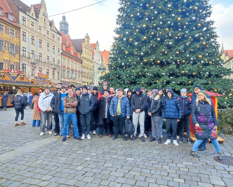 5 grudnia 2024 udaliśmy się na wycieczkę do Wrocławia. Naszym celem było zwiedzenie Wrocławia oraz wizyta na jednym z najpiękniejszych w Polsce Jarmarków Bożonarodzeniowych. Na trasie naszego zwiedzania znalazły się: Ostrów Tumski, Wyspa młyńska, Wyspa Piasek, przeszliśmy przez Most piaskowy oraz byliśmy na terenie Ossolineum- Zakładu Narodowego Ossolińskich. Widzieliśmy Uniwersytet, później byliśmy na terenie dawnej dzielnicy żydowskiej, przeszliśmy przez Plac Solny i zwiedziliśmy Rynek. W trakcie wycieczki przeszliśmy przez wyznaczoną w 1791 roku przez prof. Longinusa Antona Jungnitza linię południkową. Dużą atrakcją były mijane przez nas figurki sympatycznych krasnali, których obecnie we Wrocławiu jest około 600 i wciąż przybywają nowe.
