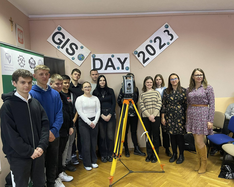 W tym roku naszymi gośćmi były przedstawicielki Politechniki Wrocławskiej. Ekspertki przedstawiły zagadnienia z dziedziny nauki, w których GIS znajduje zastosowanie oraz zapoznały uczniów z najnowszym sprzętem pomiarowym. Uczniowie mieli okazję wykonać krótkie pomiary na nowoczesnym tachimetrze. Oprócz tego wyświetlono prezentacje naszych uczniów. Dotyczyły one GIS'u, SIP'u, Elektrotechniki w GIS'ie, a także ciekawych miejsc na świecie i stadionów w Hiszpanii w formie STORY MAPS.